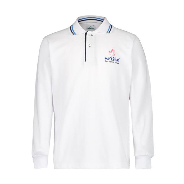 - Polo colegial de manga larga, realizado en piqué con cuello de canalé, puños de elástico
